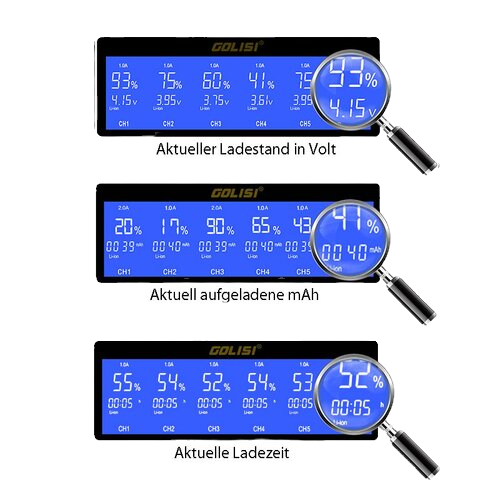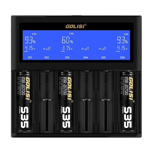 Das Golisi S6 Ladegerät aus der Smart-Reihe ist ein hochintelligentes 6-Schacht-Ladegerät, mit dem bis zu 6 Batterien verschiedenster Art schnell und sicher gleichzeitig geladen werden können. Das hier angebotene S6 Ladegerät von Golisi ist die deutsche Version (inkl. dt. Verpackung, dt. Bedienungsanleitung, dt. Steckdosenanschluß etc.).